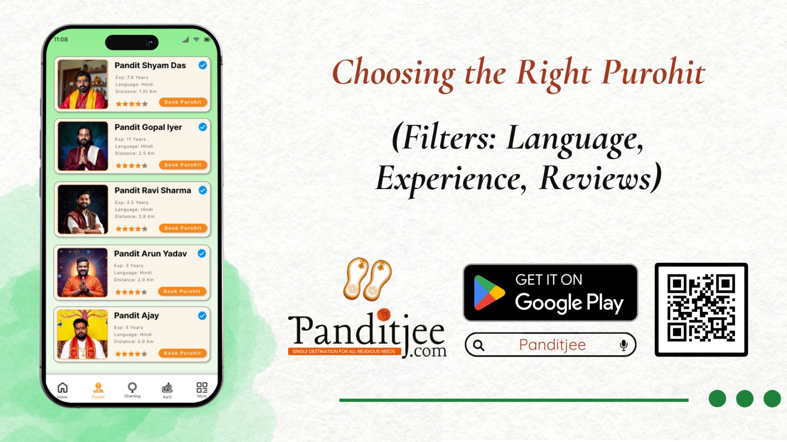 2. Choosing the Right Purohit (Filters: Language, Experience, Reviews)