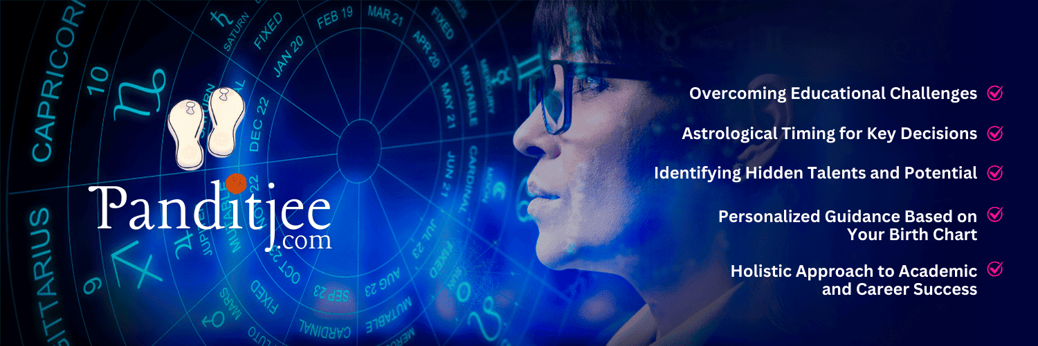 At Panditjee.com, we believe that even if your horoscope doesn’t have a perfect alignment, you can still receive guidance to improve your academic journey and unlock your full potential. Get the right educational advice and make the best decisions for a successful career, tailored to your astrological profile.