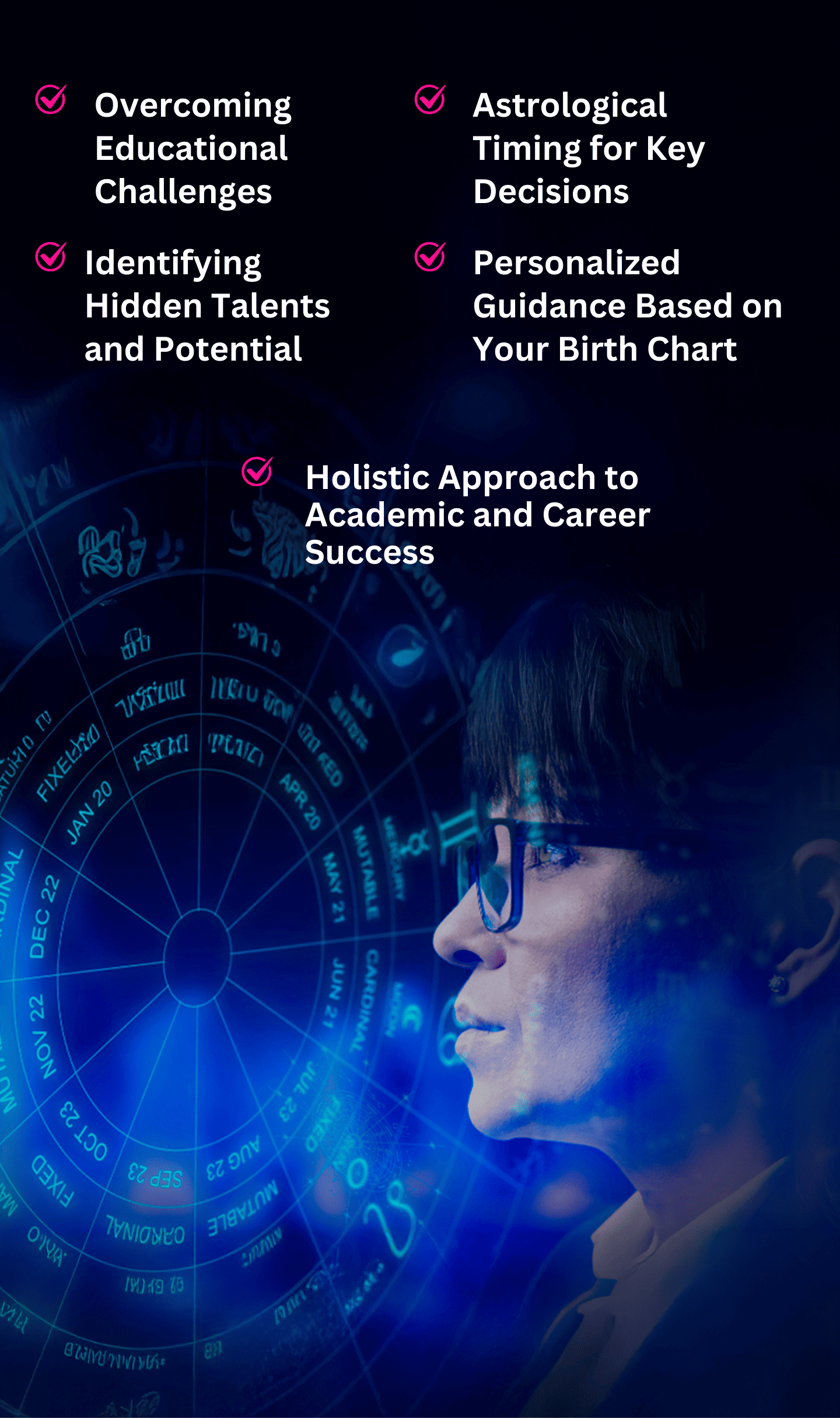 Astrology can provide clarity about your learning style, identify challenges you may face, and suggest subjects or careers that align with your astrological profile. It helps you make informed decisions about your studies and career, leading to greater success.