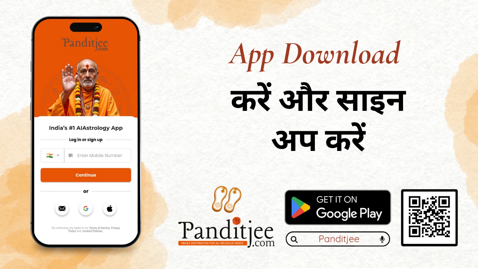 Panditjee से जुड़ना बहुत आसान है। सबसे पहले अपने मोबाइल के ऐप स्टोर से ऐप डाउनलोड करें। जब आप इसे खोलेंगे तो साइन अप का विकल्प दिखाई देगा।