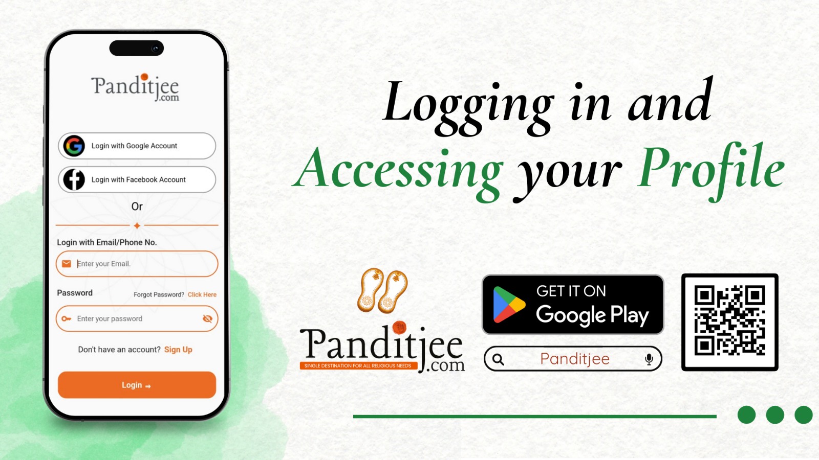After your first registration, coming back to Panditjee is quick and effortless. When you open the app, you will be prompted to log in with the phone number or email address you registered with, along with your password. This keeps your account safe and your information secure. If at any time you forget your password, there is a simple reset option that lets you regain access without stress.