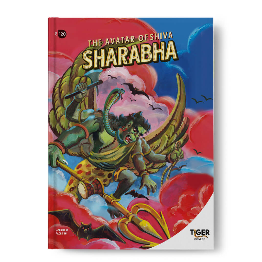 Sharabha is a powerful part-lion and part-bird beast in Hindu mythology. It also appears in Tibetan art, Buddhist tales and more recently as a figure of power and majesty in numerous emblems. The story behind the birth of this mysterious creature is fascinating, and fires up one’s imagination.