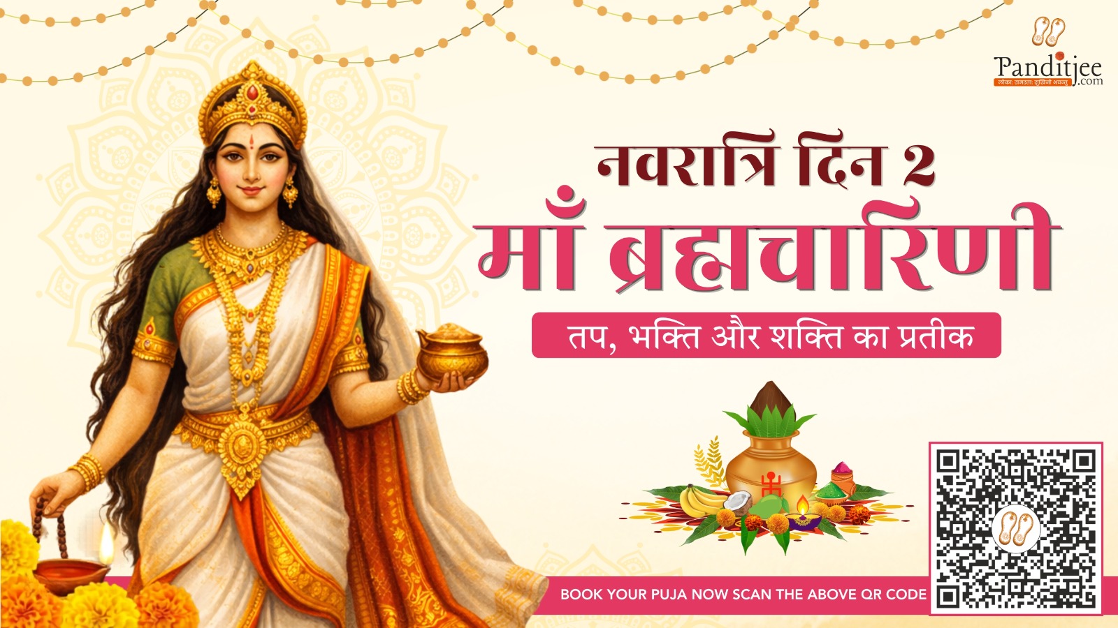 नवरात्रि का दूसरा दिन 2026: माँ ब्रह्मचारिणी की कृपा – तप, भक्ति और आत्मबल का दिव्य स्वरूप