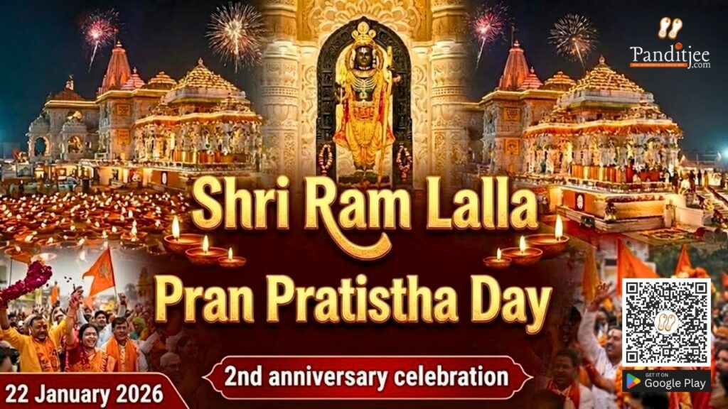 जो श्रद्धालु श्री रामलला प्राण प्रतिष्ठा दिवस 2026 के अवसर पर पूजा, हवन या विशेष अनुष्ठान कराना चाहते हैं, वे अब Panditjee App के माध्यम से घर बैठे अनुभवी पंडितों की बुकिंग कर सकते हैं।
